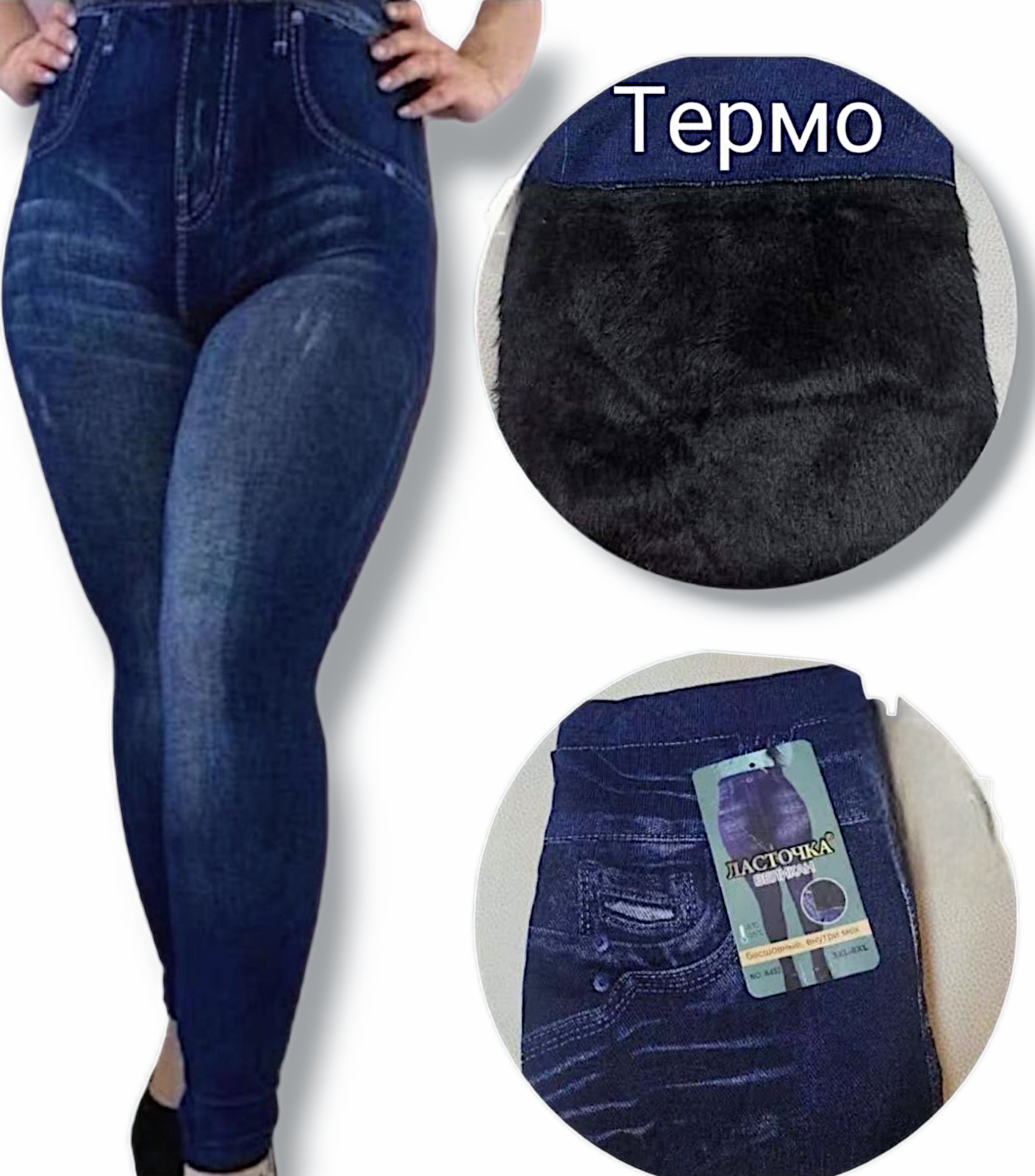 Лосіни жіночі безшовні теплі, всередині хутро. Фірми Ластівка. Імітація джинс. Батал. Розмір 54-60
