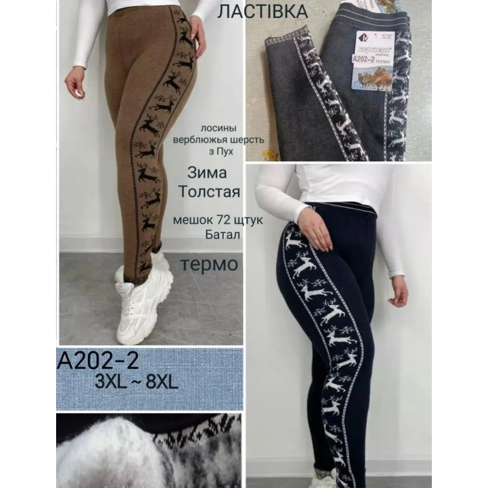 Жіночі теплі лосини. Р.L-2XL. В уп. 6 шт одного кольору. Матеріал трикотаж на хутрі. 86295