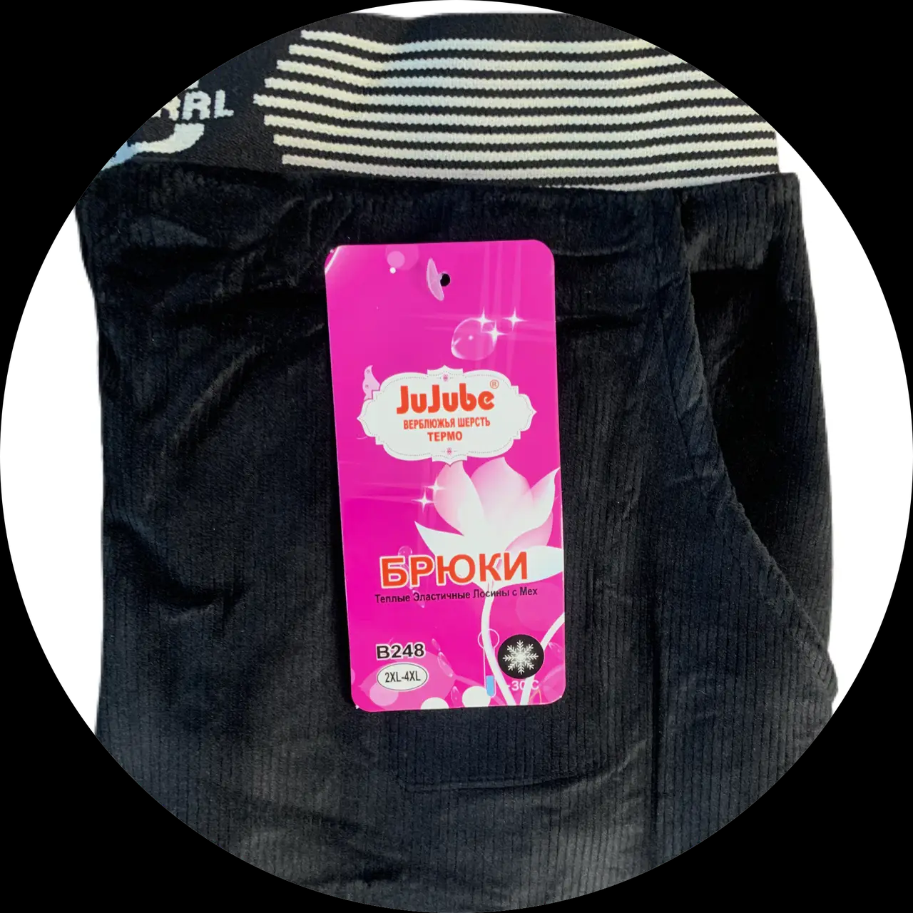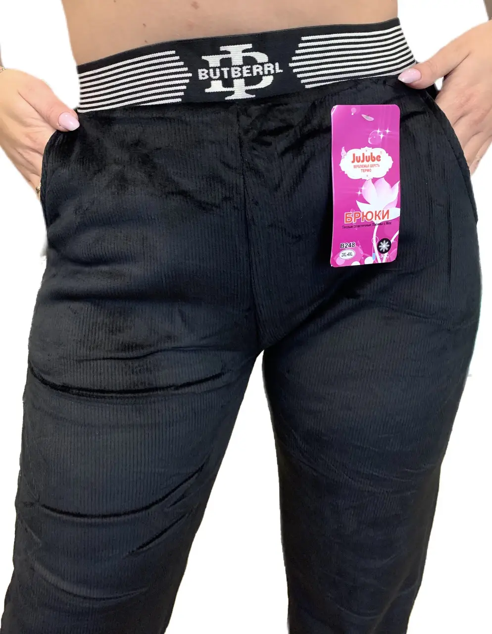 Дуже теплі, щільні штани клеш із основою плюш. Попереду 2 кишені. На поясі гумка. Верх – щільна м'яка тканина. Всередині - плюш.