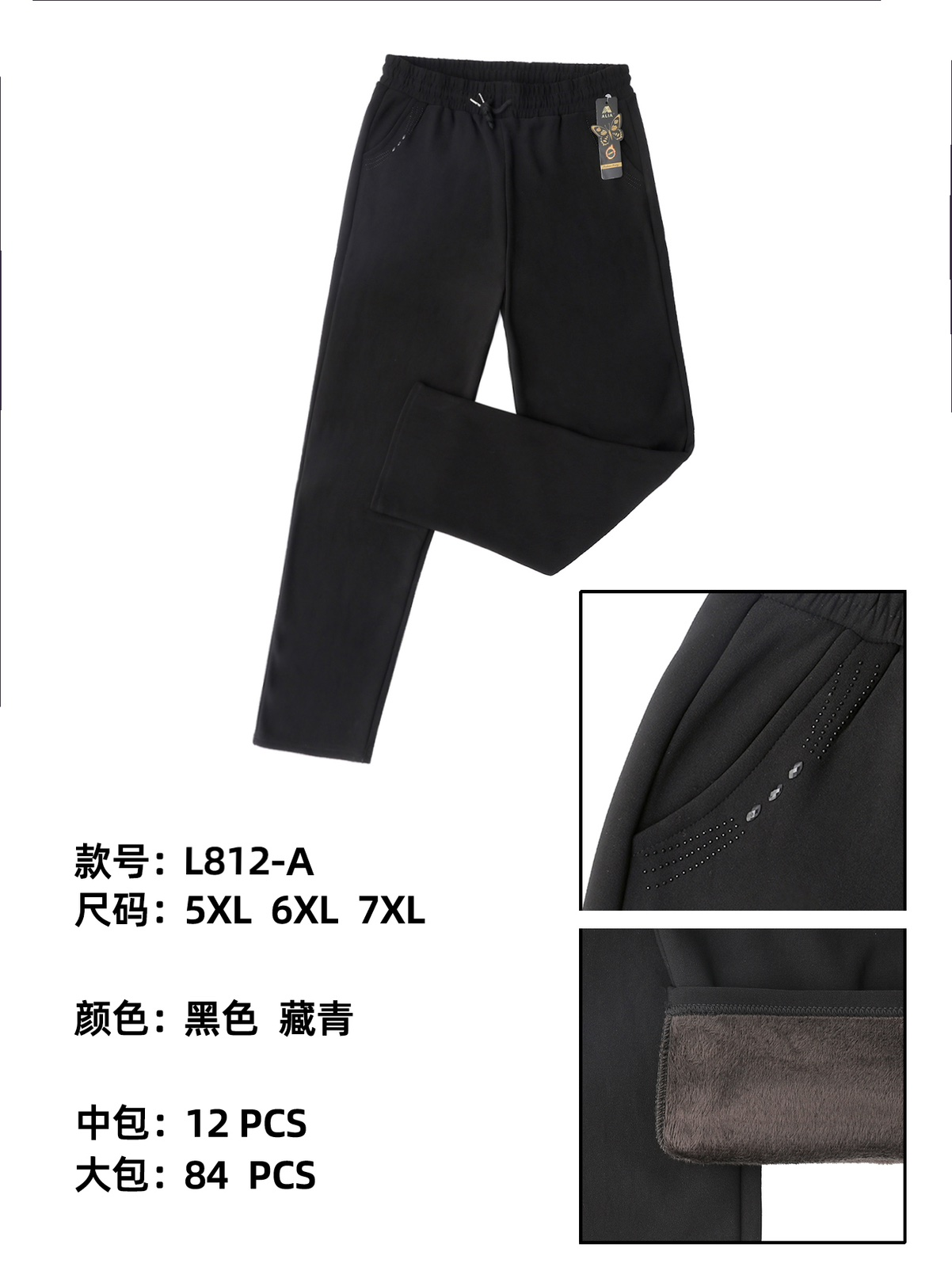 Женские брюки жаккард с высокой посадкой черные, с кожаными вставками на карманах, 44,46,48