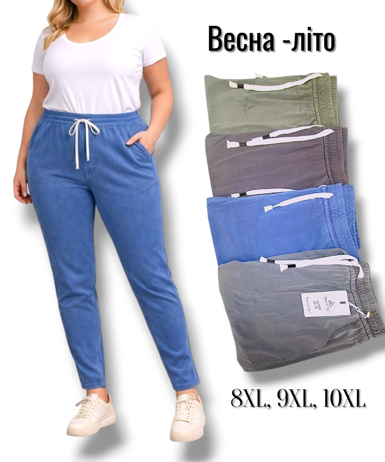 Жіночі брючки стрейч + каттон. Фірми Круто"Qi". Тканина натуральна тоненька. Батал. Розміри: 8XL, 9XL, 10XL