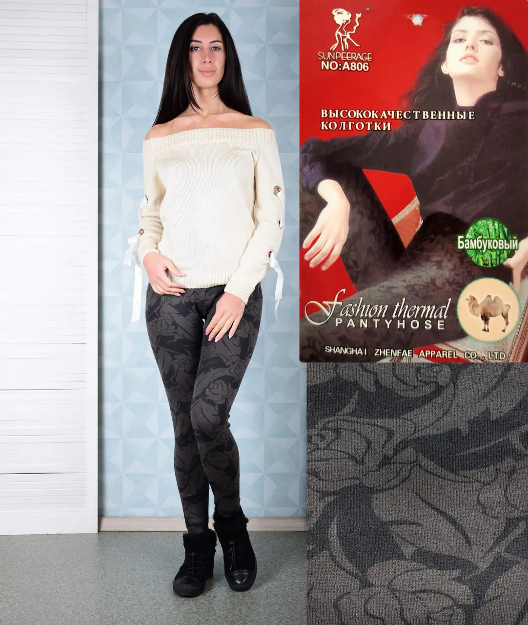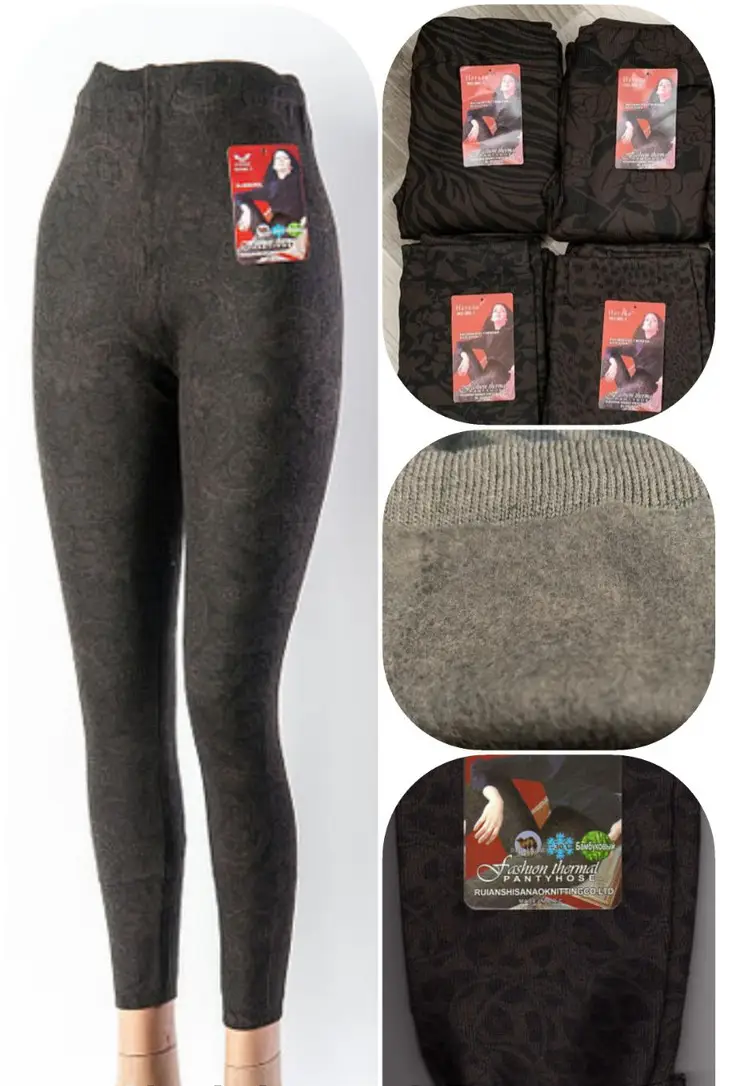 Зимние женские лосины с начёсом "Юлия" A806 Бамбук 6xl шоколад с разными узорами