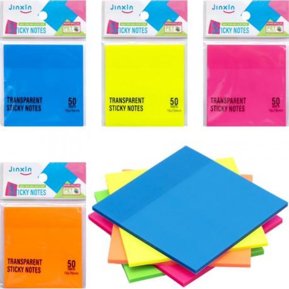 Стікери прозорі для нотаток 50аркушів 76х76мм НЕОН кольорові