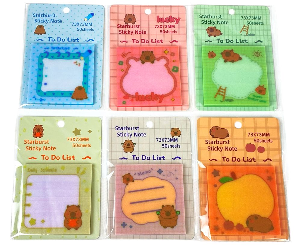 Бумага для заметок пластиковая полупрозрачная с клейким слоем "Капибара" 73 х 73мм 50 листов (9186-8895)