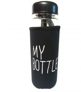 Бутылка для воды My Bottle 500 мл изготовлена из пищевого пластика, закрывается с помощью винтовой пробки. Высота 195 мм, наружный диаметр горлышка 50 мм, внутренний диаметр горлышка 44 мм, вес 95 грамм. В комплект входит чехол и средство для дозировки воды.