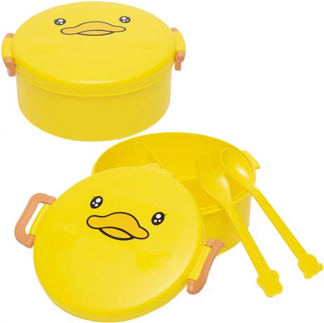 Зручний контейнер для їжі виконаний в яскравому дизайні, його зручно брати з собою в школу, на прогулянку, пікнік або спортивні заняття. Матеріал: харчовий пластик. Є вилка, ложка. Розмір: 18*18*7,5см