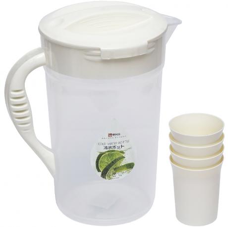 Набір для напоїв глечик пластиковий на 2,5 літри та 4 склянки на 200 мл. Цілісність товару необхідно перевіряти поштою