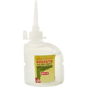 Кислота ортофосфорная 60% в пластике 30 мл предназначена для пайки черных и цветных металлов,а также для преобразования ржавчины.