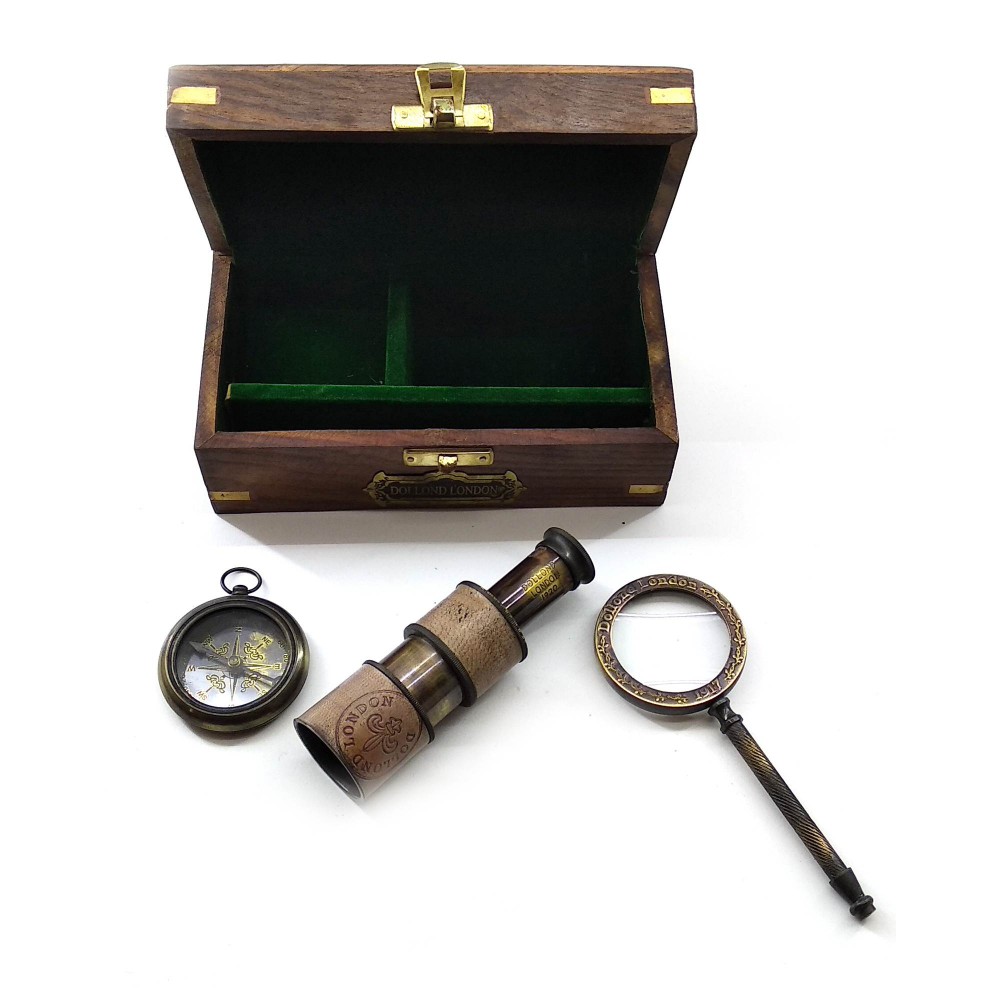 Лупа и подзорная труба станет отличным подарком для морского волка и стильным предметом интерьера, при том они абсолютно функциональны. Обратите внимание: лупа и подзорная труба сделаны в стиле ретро; изделия изначально выглядят состаренными, футляры и поверхность луп — потертыми.