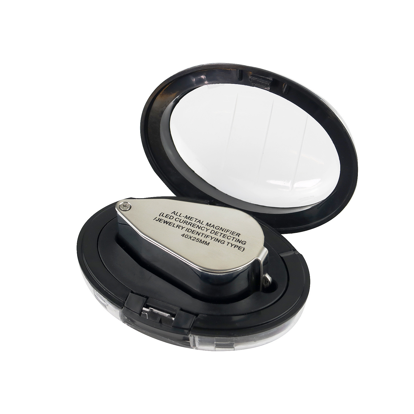 Складная лупа с подсветкой 40x25 мм, металлическая (модель 9890)