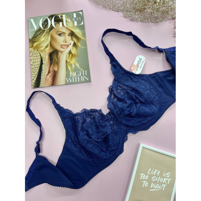 ОПИСАНИЕ Ажурный бюст без поролона на хлопковой подставке. Бретель - несъемная, спина - гладкая.