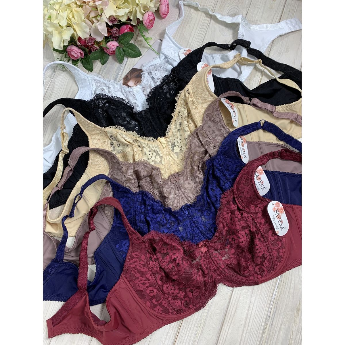 Описание: Ажурный бюст без поролона на хлопковой основе. Бретель – несъемная, спина - гладкая