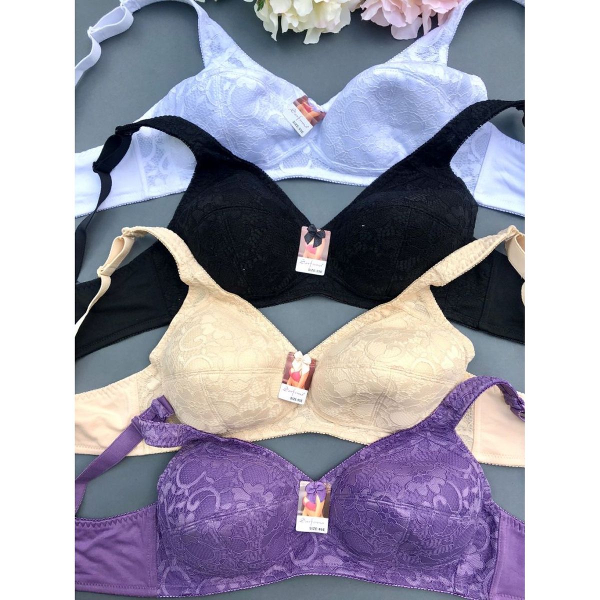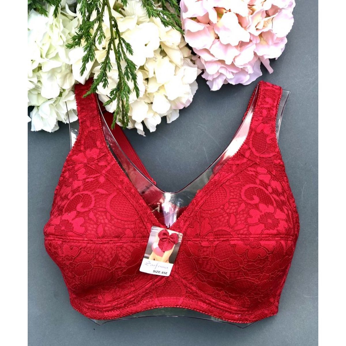 Описание: Ажурный бюст на мягком поролоне. Бретель - несъемная, спина - гладкая.