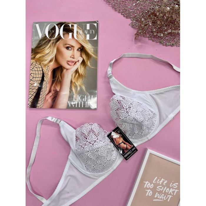 ОПИСАНИЕ Ажурный бюст без поролона на хлопковой подставке. Бретель - несъемная, спина - гладкая.