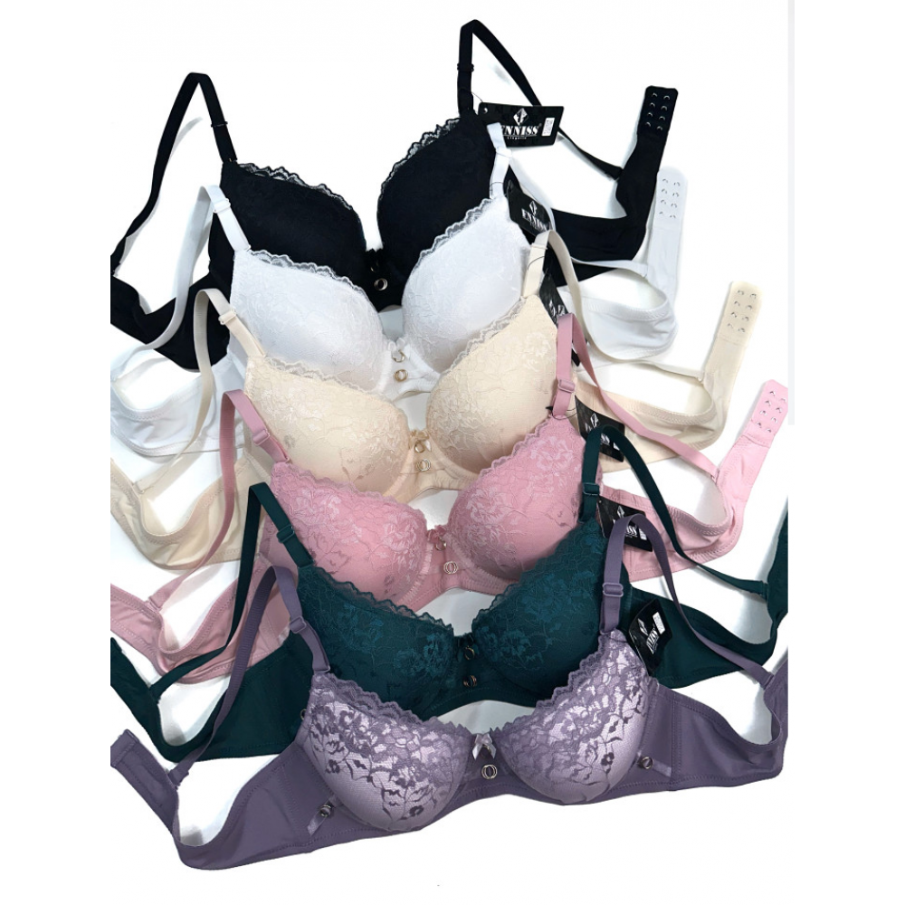 | ОПИСАНИЕ | Кружевной бюстгальтер на поролоне. Бретель - съемная, регулируется, спина - гладкая. Застежка 2 крючка на 4 позиции. |