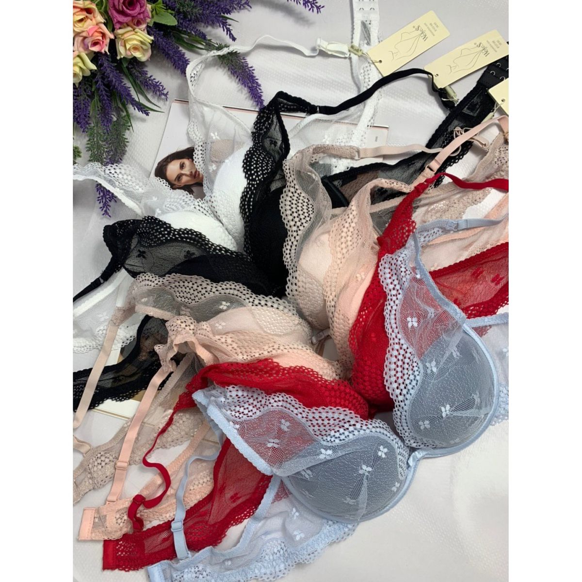Описание: Ажурный бюст на тонком поролоне. Бретель – съемная, спина - ажурная.