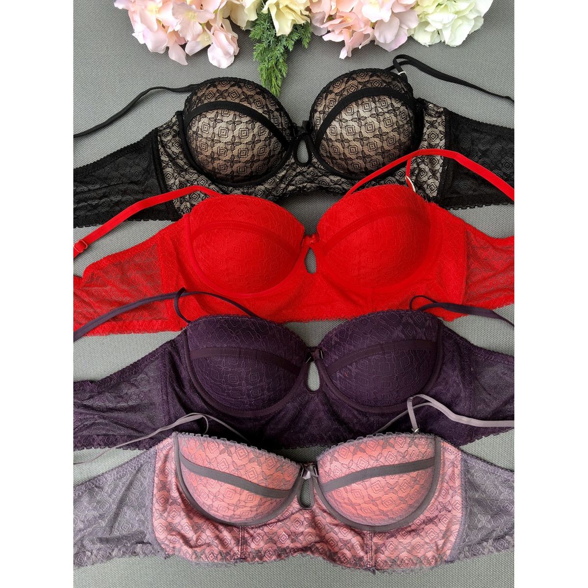 Описание: Ажурный бюст на тонком поролоне. Бретель – съемная, спина - гипюровая. По объему бюста силиконовые дорожки