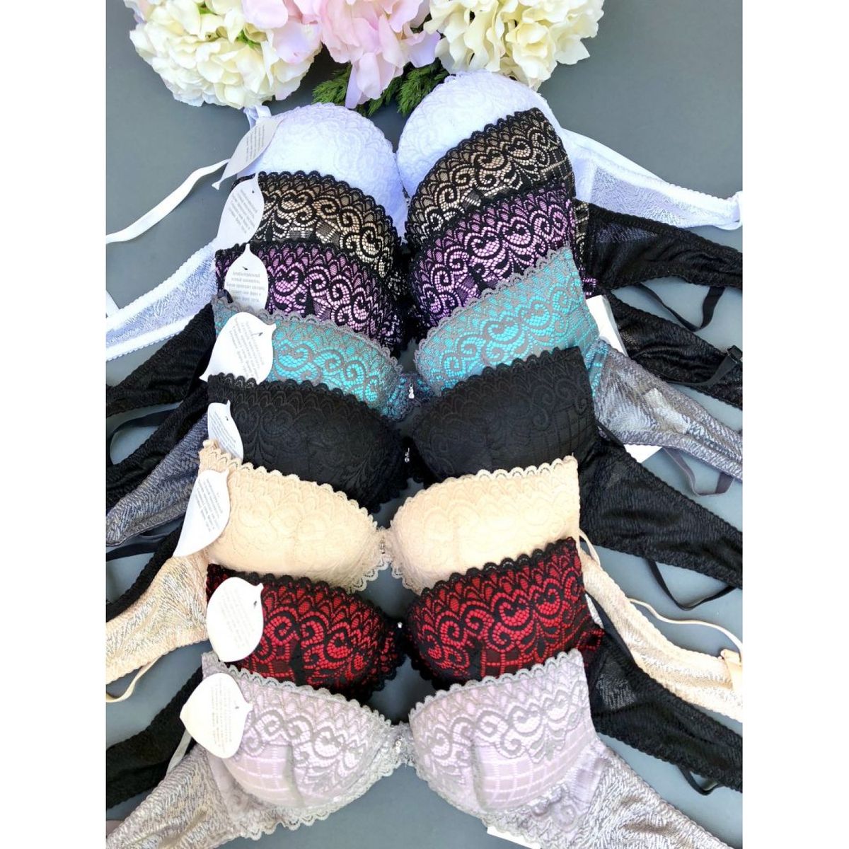 Описание: Ажурный бюст на гелевом пушапе(массажные шарики). Бретель – съемная, спина - гладкая сетка.