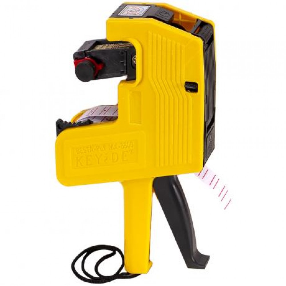 Етикет-пістолет чорнильний однорядковий. Пластиковий. Призначений для нанесення відтиску артикулу, ціни, номенклатурного номера, дати, номера серії, партії на спеціальну стрічку-цінник. Можлива заміна фарбувального валика, його заміна проста і недорога операція, але вона дозволяє значно продовжити термін служби етикет пістолета.