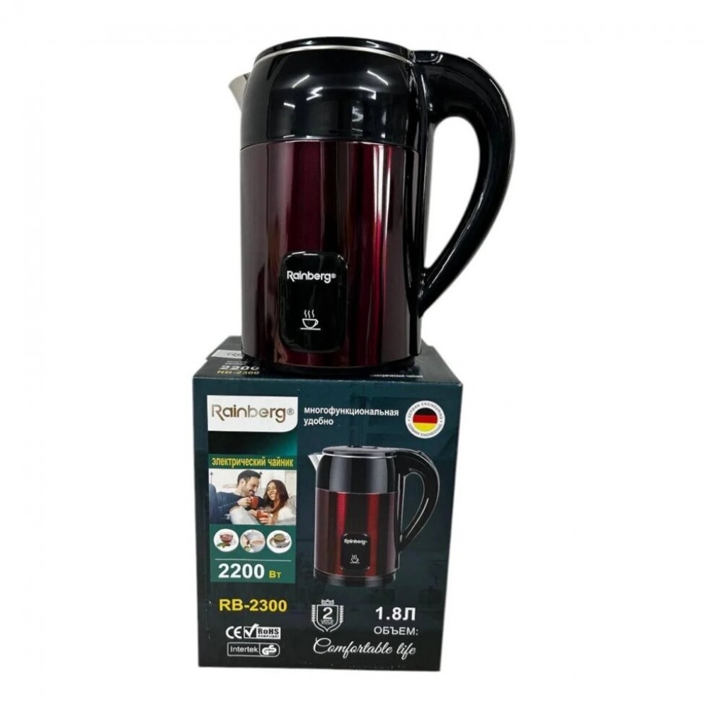 Чайник электрический Rainberg из нержавеющей стали 2200 Вт 1,8 л Красный (RB-2300)