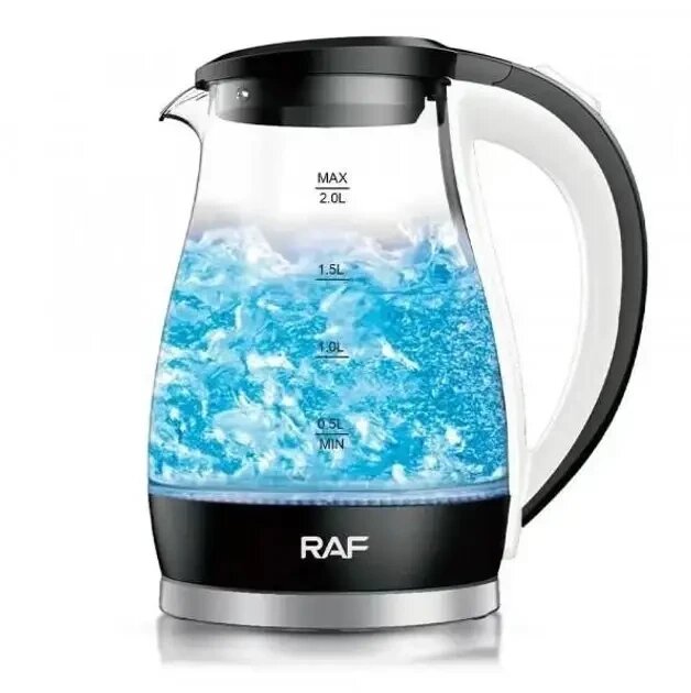 Электрический стеклянный чайник RAF R. 7865 электрочайник 2л дисковый 2000Вт черный