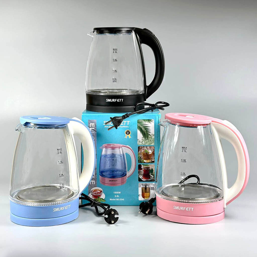 Электрический стеклянный чайник 1.8л. Rainberg RB-998 синий, с LED подсветкой, яркий принт