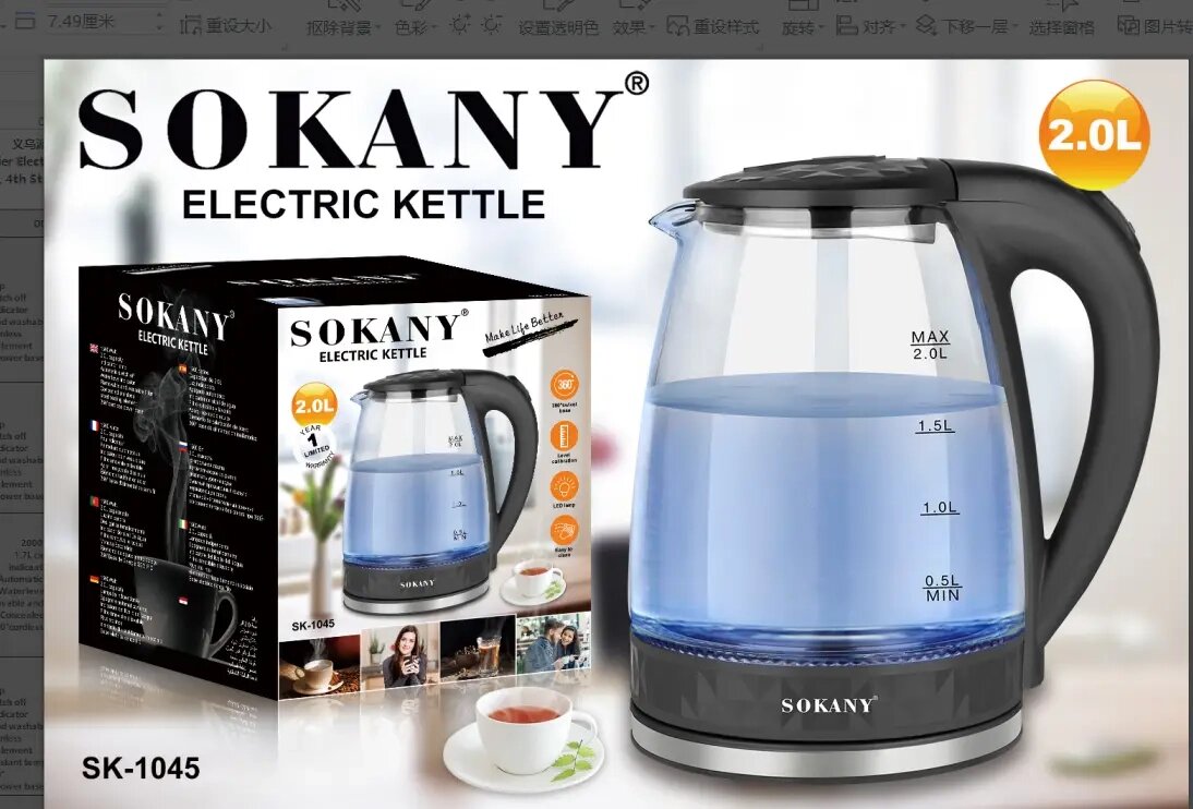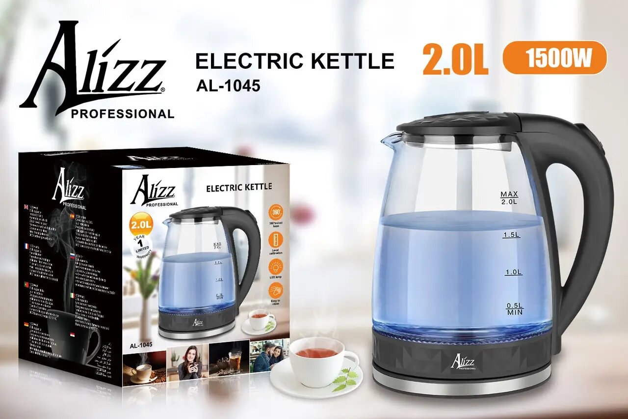Прозрачный стеклянный чайник Rainberg RB-2240 Дисковый электрический чайник на 2 литра 2200W