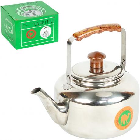 Чайник з нержавіючої сталі — зручне рішення для кип’ятіння води в домашніх умовах. Об’єм — 1,5 л. Оснащений одношаровим дном дыаметром 10 см. Корпус виготовлений з нержавіючої сталі. Має верхню металеву ручку з пластиковою накладкою для зручного утримання та ручку на кришці з пластику. Підходить для використання на всіх типах плит, крім індукційних. Практичний для щоденного приготування гарячих напоїв. Упакований у коробку розміром 16,5×16,5×10,5 см. Ціна вказана за 1 одиницю товару. Товар вигідний для оптових магазинів і підходить для роздрібного продажу.
