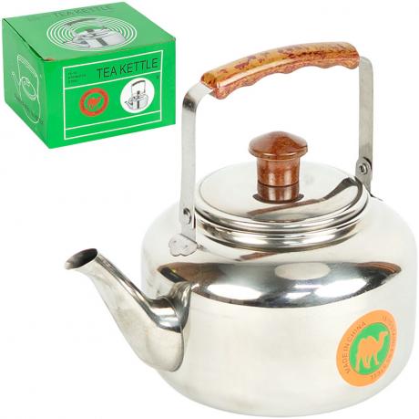 Чайник з нержавіючої сталі — зручне рішення для кип’ятіння води в домашніх умовах. Об’єм — 2 л. Оснащений одношаровим дном діаметром 11 см. Корпус виготовлений з нержавіючої сталі. Має верхню металеву ручку з пластиковою накладкою для зручного утримання та ручку на кришці з пластику. Підходить для використання на всіх типах плит, крім індукційних. Практичний для щоденного приготування гарячих напоїв. Упакований у коробку розміром 18×18×11,5 см. Ціна вказана за 1 одиницю товару. Товар вигідний для оптових магазинів і підходить для роздрібного продажу.