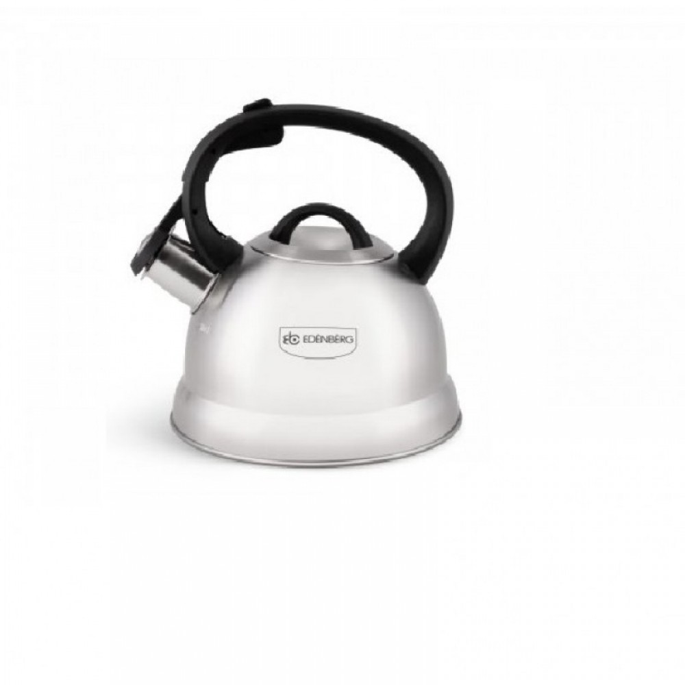 Одним из самых простых предметов на кухне является чайник, но не смотря на простоту этот предмет кухонной утвари является одним из самых важных, поскольку мы пользуемся чайником несколько раз в день. Этот маленький работник всегда под рукой и готов согреть для нас воду и настроение. Чайник Edenberg со свистком 2.0 л Серый (EB-1980) изготовлен из нержавеющей стали, это надежный, долговечный и экологичный материал.Двойное капсульное индукционное дно чайника прекрасно подойдёт как для индукционных плит, так и для газовых, электрических или стеклокерамических плит. Ручка чайника имеет эргономическую форму и не нагревается при использовании, так как выполнена из бакелита и дополнительно покрыта мягким силиконом. Свисток чайника из нержавеющей стали, откидывается легким нажатием кнопки на ручке