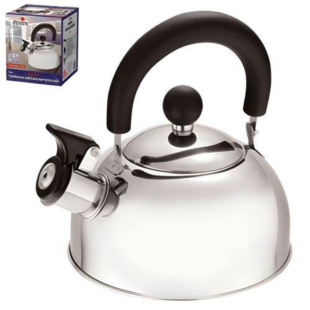 Чайник со свистком Benson BN-722 из нержавеющей стали 2.5 л Коричневая ручка