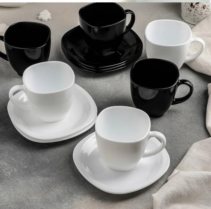 Чашка объемом 220 мл - 3 шт.черные, 3 шт.белые,
