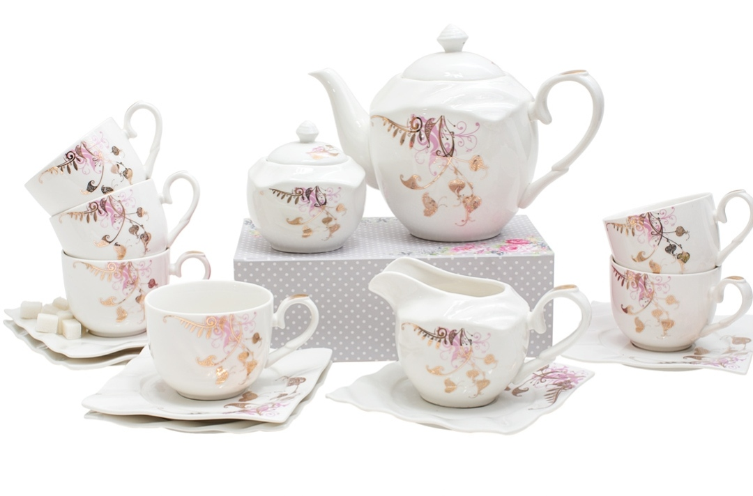 Чайный фарфоровый набор 15предметов (Чайник+сахарница+молочник+6чашек+6блюдец)