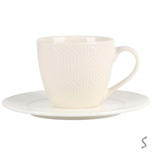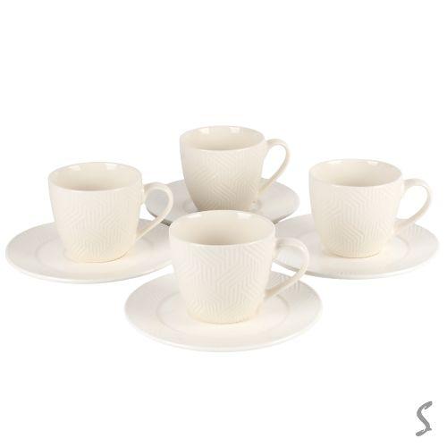 Кофейный набор фарфоровый: 2 чашки 240мл + 2 блюдца, цвет — розовый с белым