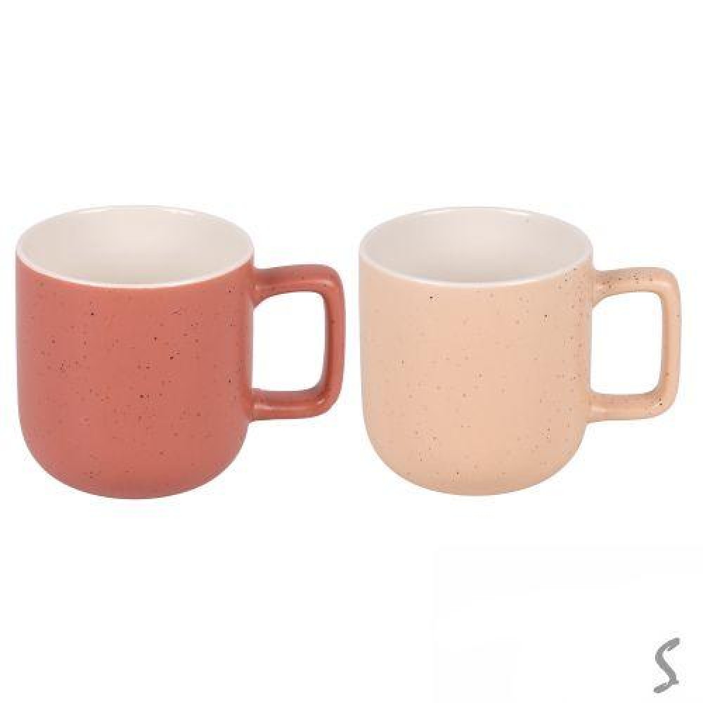 Кофейный набор фарфоровый: 2 чашки 240мл + 2 блюдца, цвет — розовый с белым