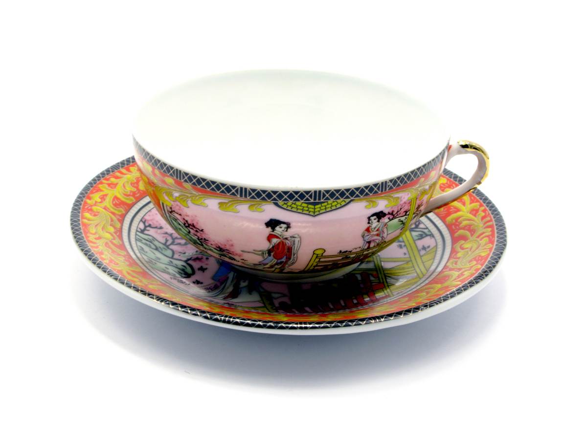Чашка+блюдце фарфор (210 мл)(ACS108-8) Розовый (h-6см, d-чашки - 8см, d-блюдца - 14см)