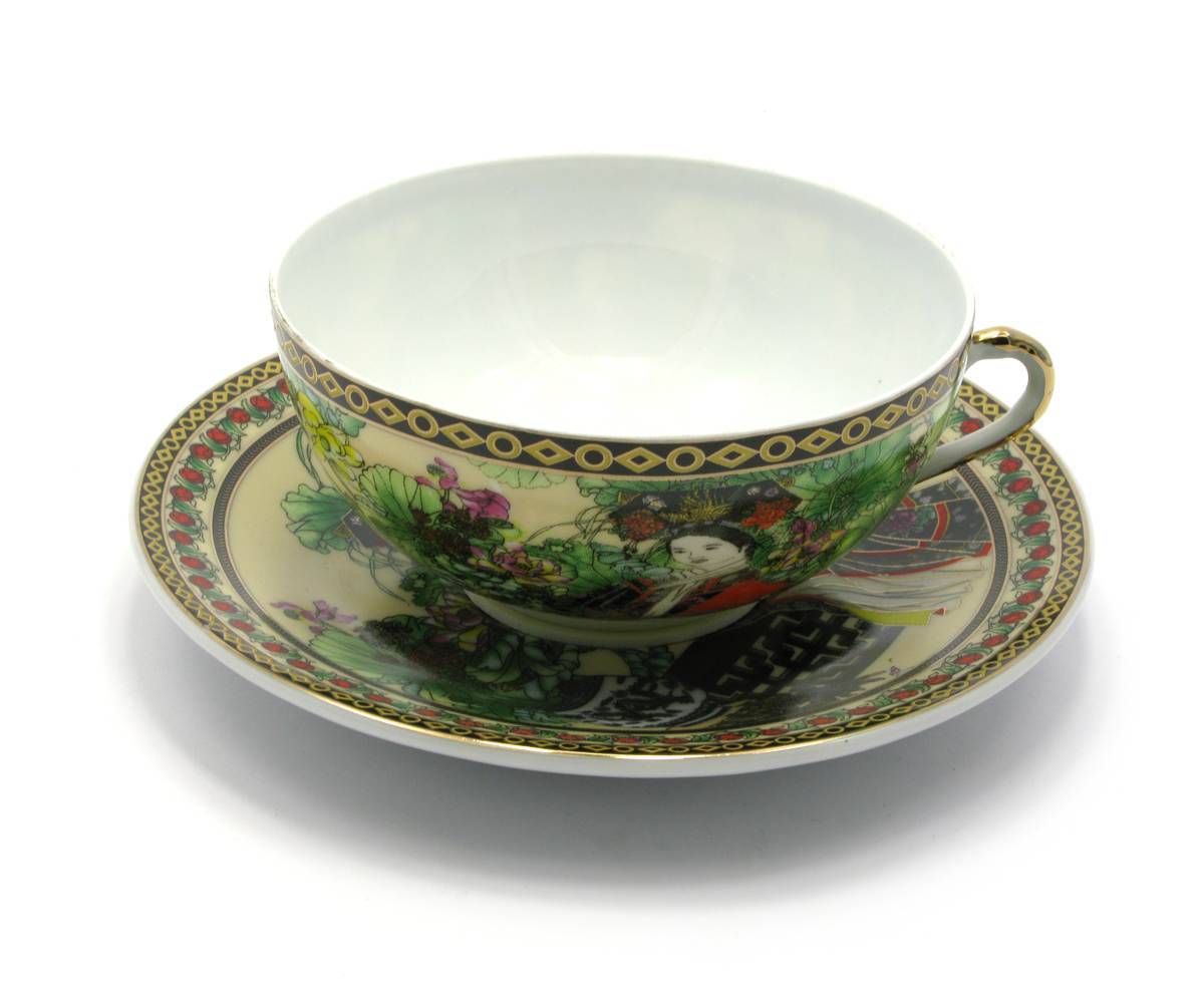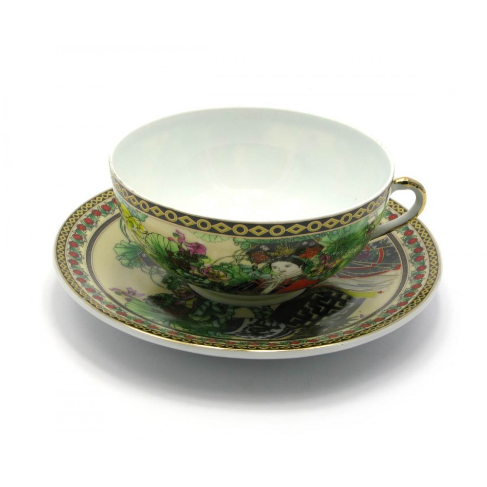 Чашка+блюдце фарфор (150мл)(SBS127) Китаянка зеленый (h-4,5см,d-9,5см d блюдца-13см)
