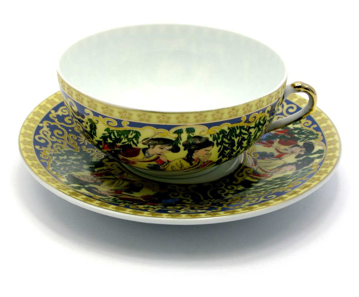 Чашка+блюдце фарфор (150мл)(SBS86-5) Зеленая ива (h-4,5см,d-9,5см d блюдца-13см)