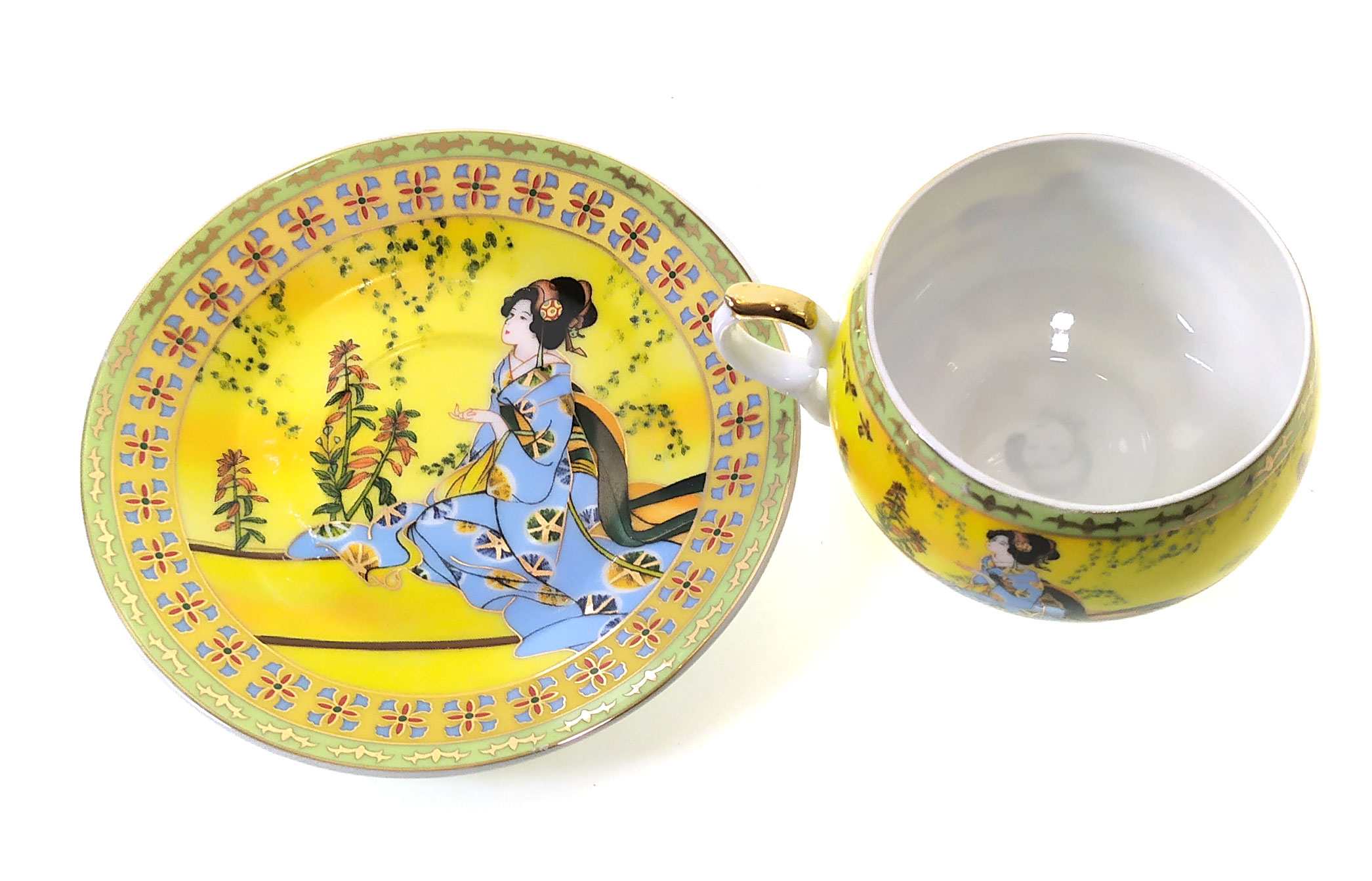 Чашка+блюдце фарфор (210 мл)(ACS141-4) Жёлтый (h-6см, d-чашки - 8см, d-блюдца - 14см)