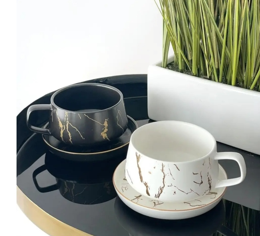 Чашка+блюдце фарфор (210 мл)(ACS108-8) Розовый (h-6см, d-чашки - 8см, d-блюдца - 14см)