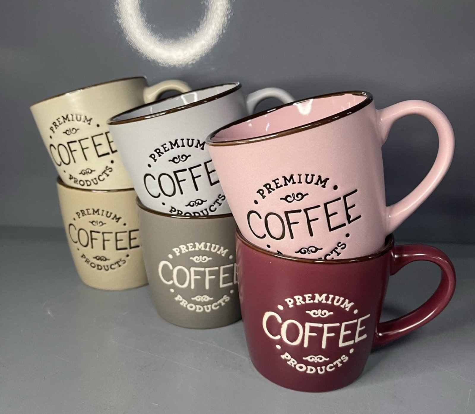 Кофейный набор фарфоровый: 2 чашки 240мл + 2 блюдца, цвет — розовый с белым
