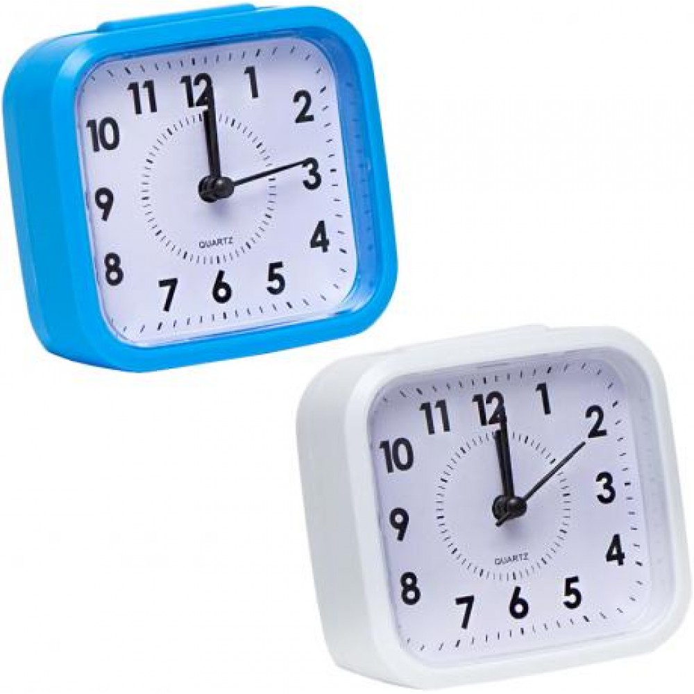 Настільний годинник з фунціями будильника.Працюють від 1 батарейки АА (не комплектується) . Розмір: 10х9,5см см