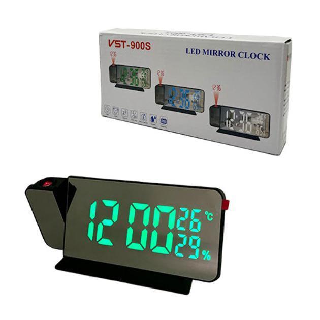 Часы сетевые проекционные VST-900S-4, зеленые, температура, влажность, USB