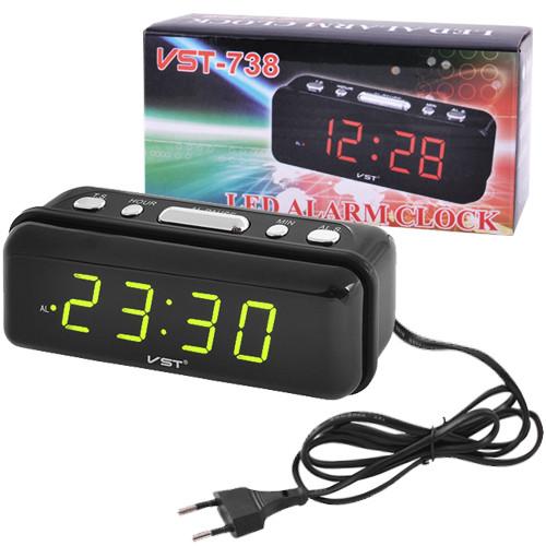 Часы сетевые VST-738-2 зеленые, 220V