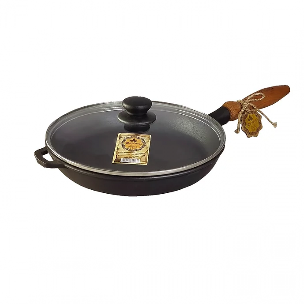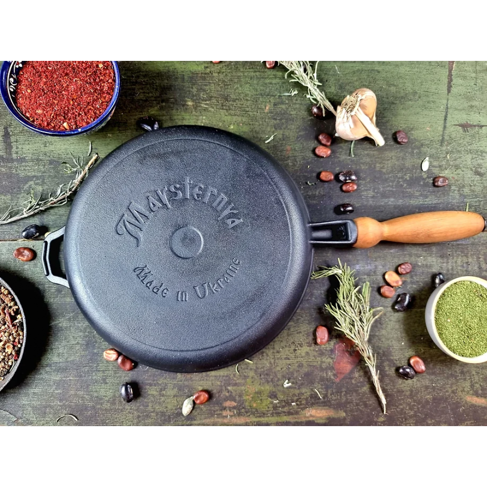 Сковорода с крышкой чугунная Maysternya Ø26см, глубина 6 см с деревянной ручкой