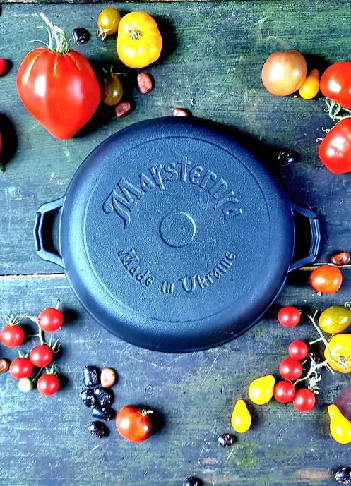 Сковорода с крышкой чугунная Maysternya Ø28см, глубина 6 см с деревянной ручкой