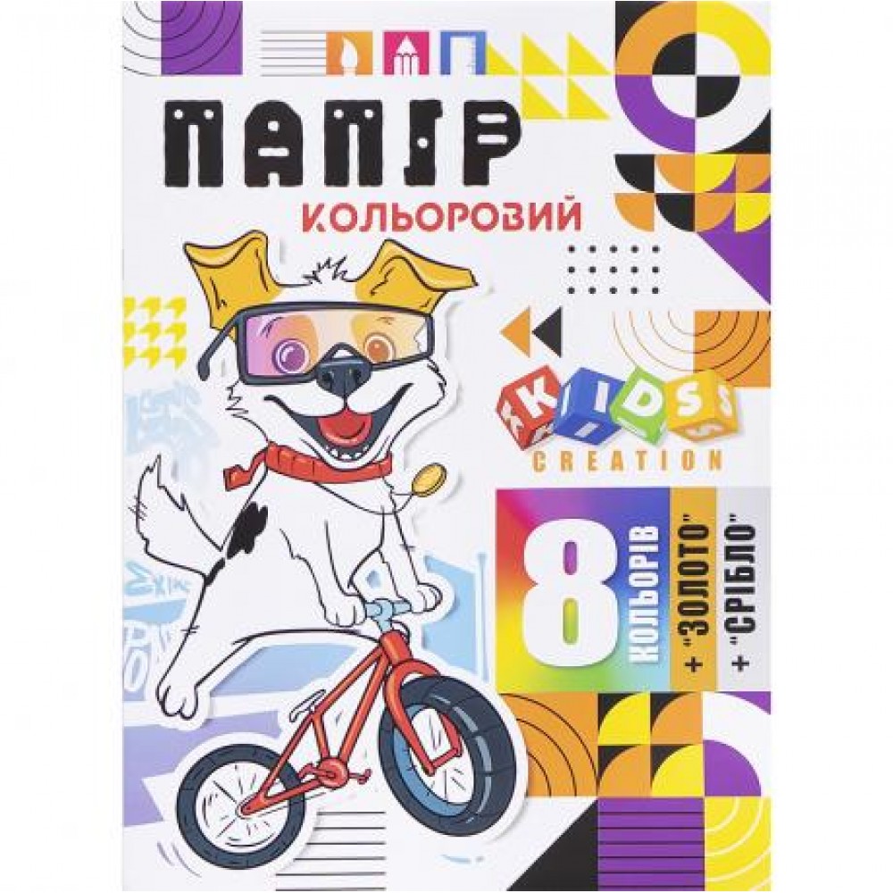Кольоровий папір А4 глянсовий, односторонній Золото+Срібло скоба 10 аркушів Мандарин 24146