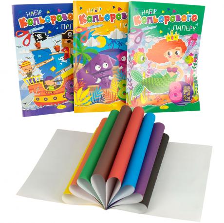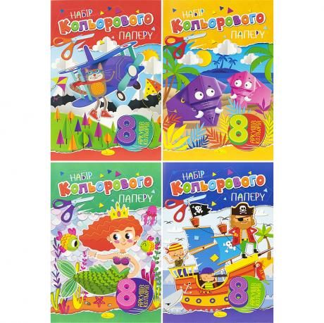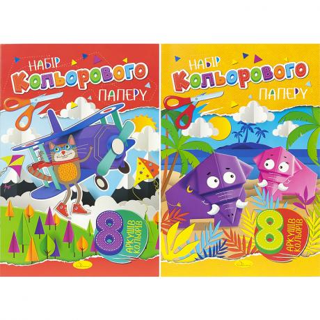 Кольоровий папір А4 односторонній, крейдований, 8аркушів Апельсин офсет,скоба АП-1201