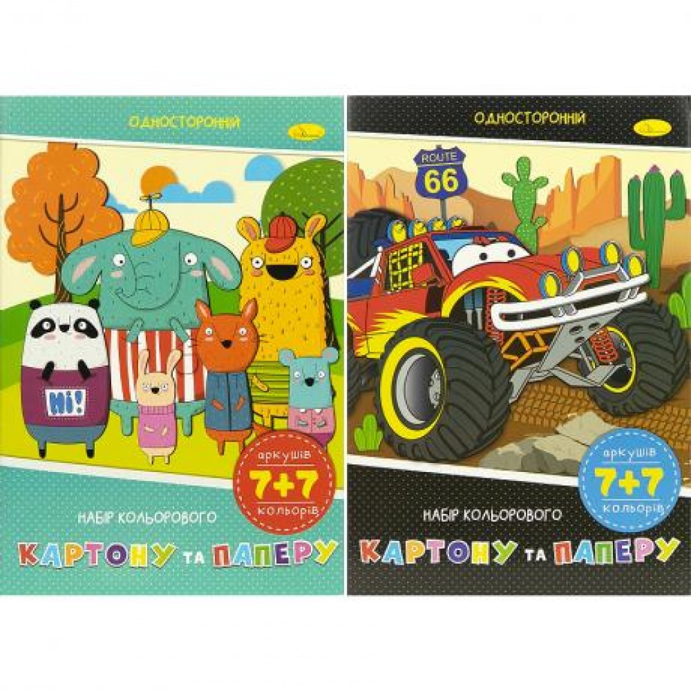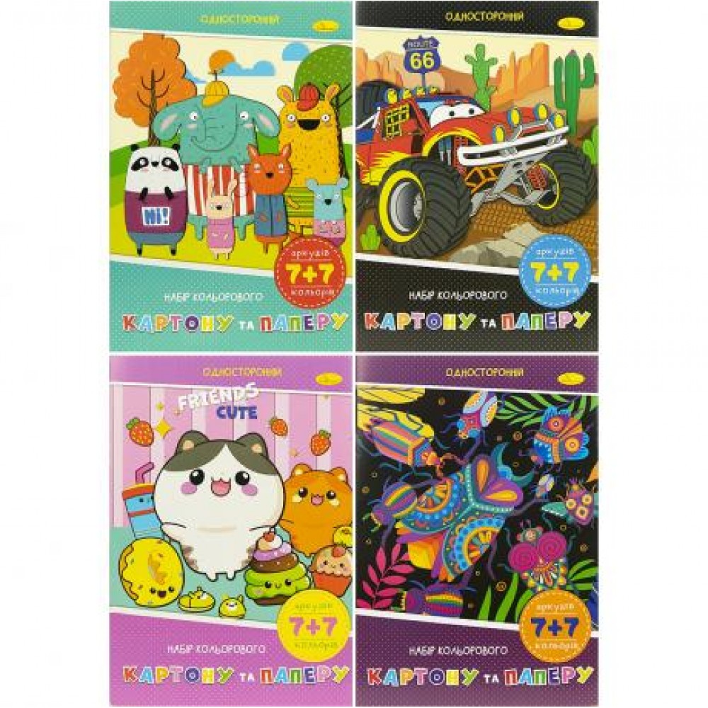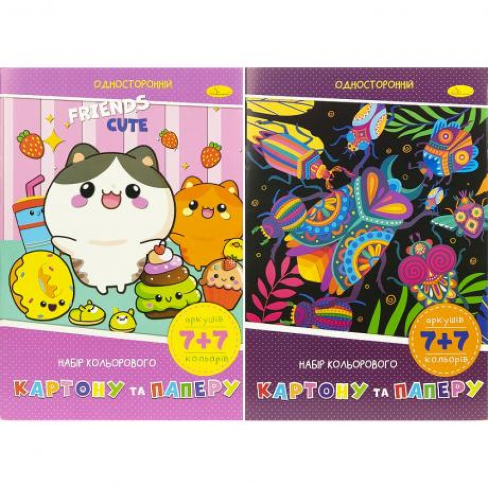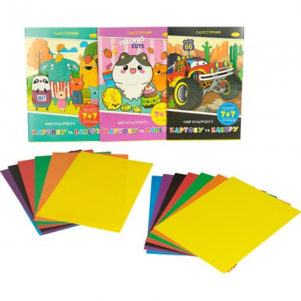 Набір кольорового картону та паперу "7+7", 14 аркушів (формат 200×295 мм) — це практичне рішення для дитячої творчості, шкільних і домашніх занять. У наборі представлено 7 основних кольорів (жовтий, зелений, помаранчевий, червоний, чорний, фіолетовий, синій), кожен — у вигляді аркуша паперу та аркуша картону.