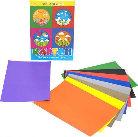 Кольоровий картон А4 односторонній Золото+Срібло 9 аркушів ТМ Тетрада ТЕ254